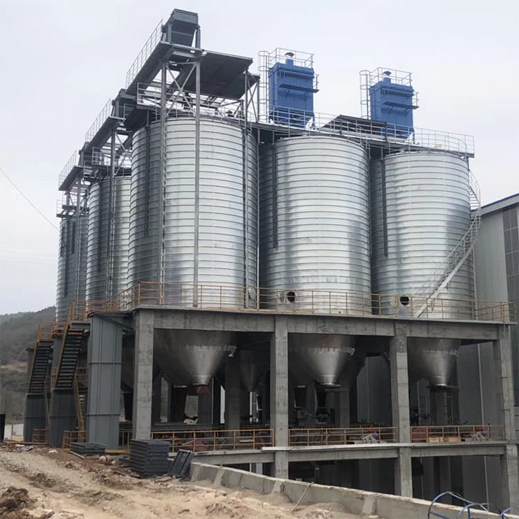 接收与清理设置在筒仓中央该形式筒仓一般采用对称排列,提升机井架固定,经过提升后的物料通过仓顶溜管进人筒仓。这种形式省去了仓顶输送设备和上通廊,从而节省了建造费用,缩短了建造工期。对于贮存时间要求较长的大型粮库,则应根据物料的流向、场地情况、工艺要求等合理地配置投料口、工作塔、烘干塔及泰州钢板仓的位置。国华钢板仓介绍了这几种常见的进料形式,实际中可将各种形式相互组合,相互渗透,根据实际情况合理搭配,灵活选用。